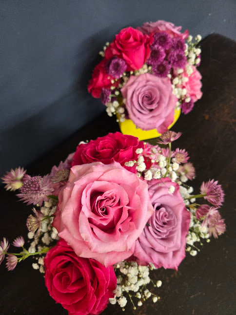 Due to seasonal availability and to ensure the freshest flowers, we may substitute certain flowers or containers while maintaining the overall design, color scheme, and style of your arrangement.